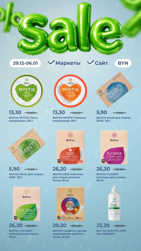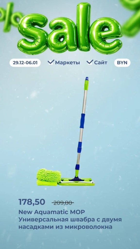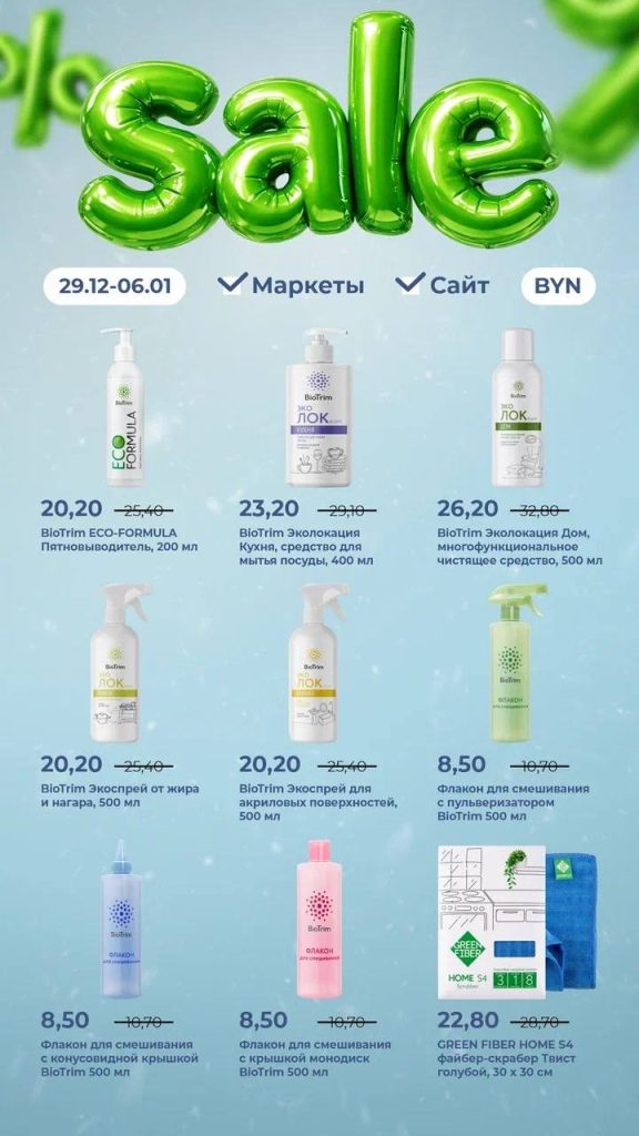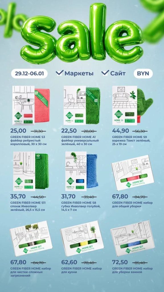 Откройте для себя безопасную и эффективную уборку в Новом году вместе с товарами Green Fiber.Mop, Green Fiber и BioTrim, на которые с 29 декабря (10:00 по времени столицы) по 6 января (23:59 по времени столицы) действует скидка до 20 %.