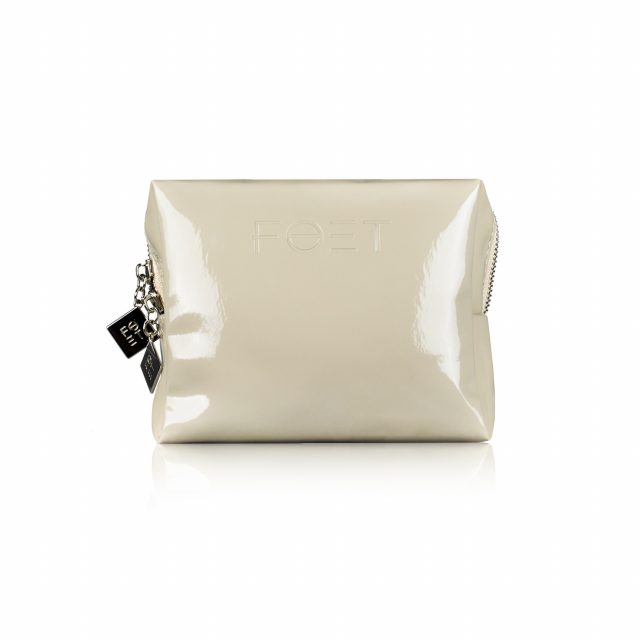 Серая классическая лаковая косметичка, с двойной серебристой молнией и лавандовым подкладом. В косметичку вместится весь ассортимент FOET. Внутри имеется отдельный кармашек, в который можно сложить спонжи для демакияжа или косметическую салфетку. Косметичку можно взять с собой на работу, тренировку или отправиться в путешествие!