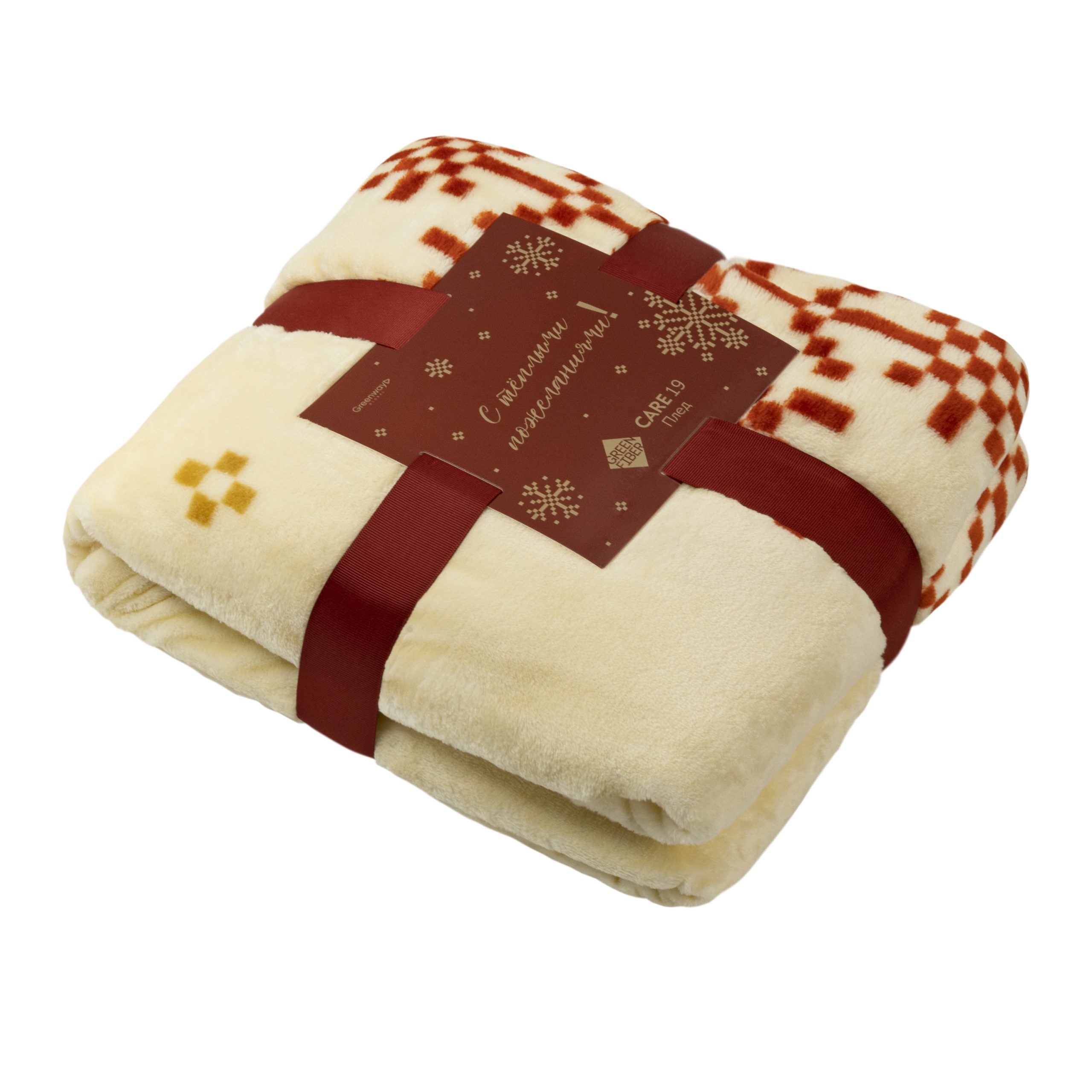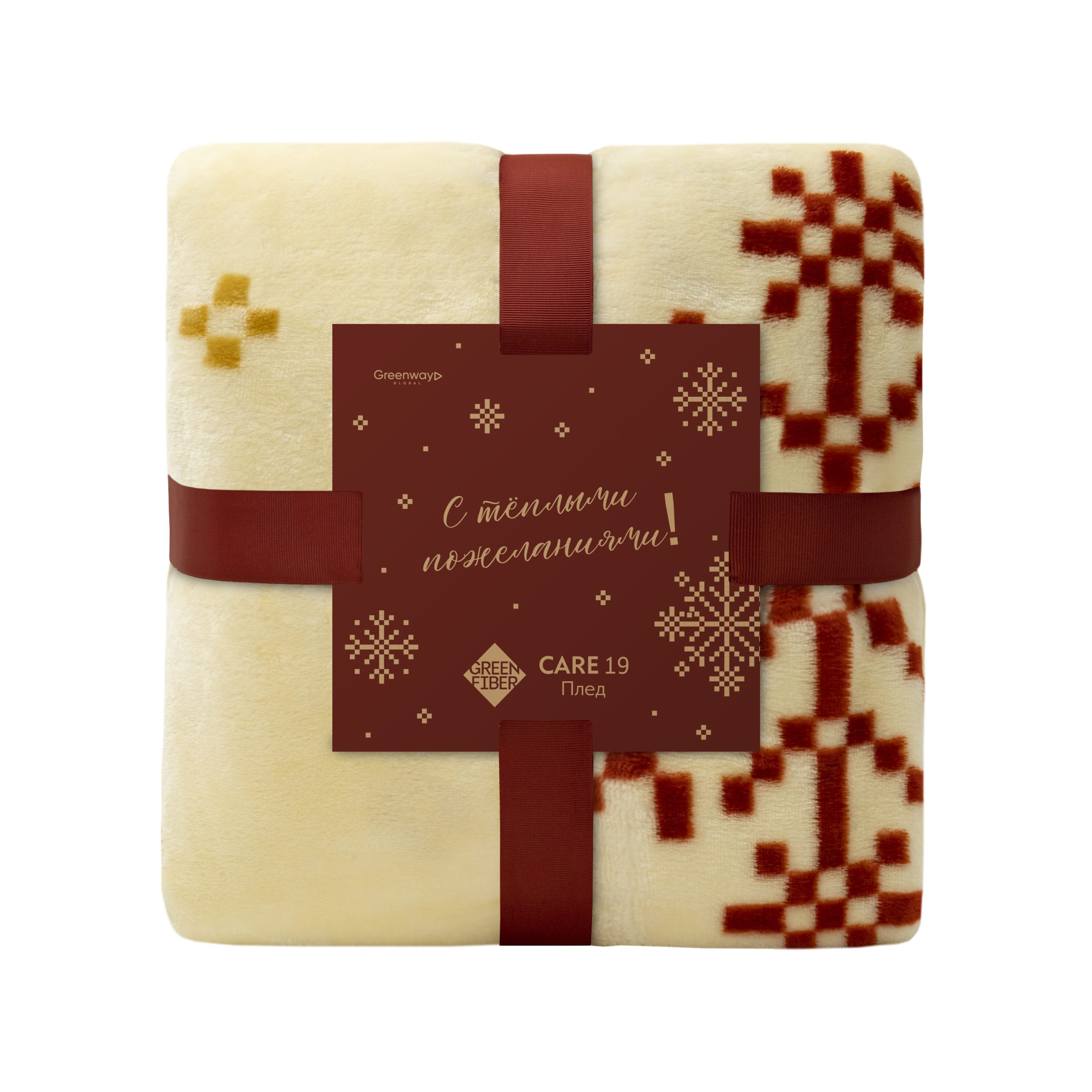 Плед «Согрею любовью» Green Fiber CARE 19, бежевый с узором снежинки